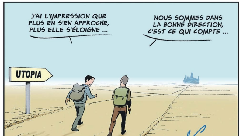 NB : il est important de préciser que le qualificatif d’ “utopique” est dans le champ politique abusivement attribué à des partis qui proposent des mesures qui ne vont pas dans le sens de la perpétuation du statu quo malgré la faisabilité concrète de leur projet, et ce dans même dans l’immédiat. Je voudrais ainsi souligner le fait que les programmes politiques des partis de gouvernement de gauche ne sont en aucun cas utopiques. Certes, comme tout programme, ils sont guidés par une utopie, mais ils ne sont pas irréalisables, même en tenant compte des contraintes faibles que nous avons évoquées précédemment (le programme du NFP par exemple était chiffré). Dès lors, même si cet article se veut défendre l’importance de l’utopie, ce qualificatif ne peut pas être adressé aux partis de gauche ; et nous devons résolument combattre l’instrumentalisation sémantique de ce terme « utopique », utilisé pour délégitimer certaines propositions de mesures sociales.